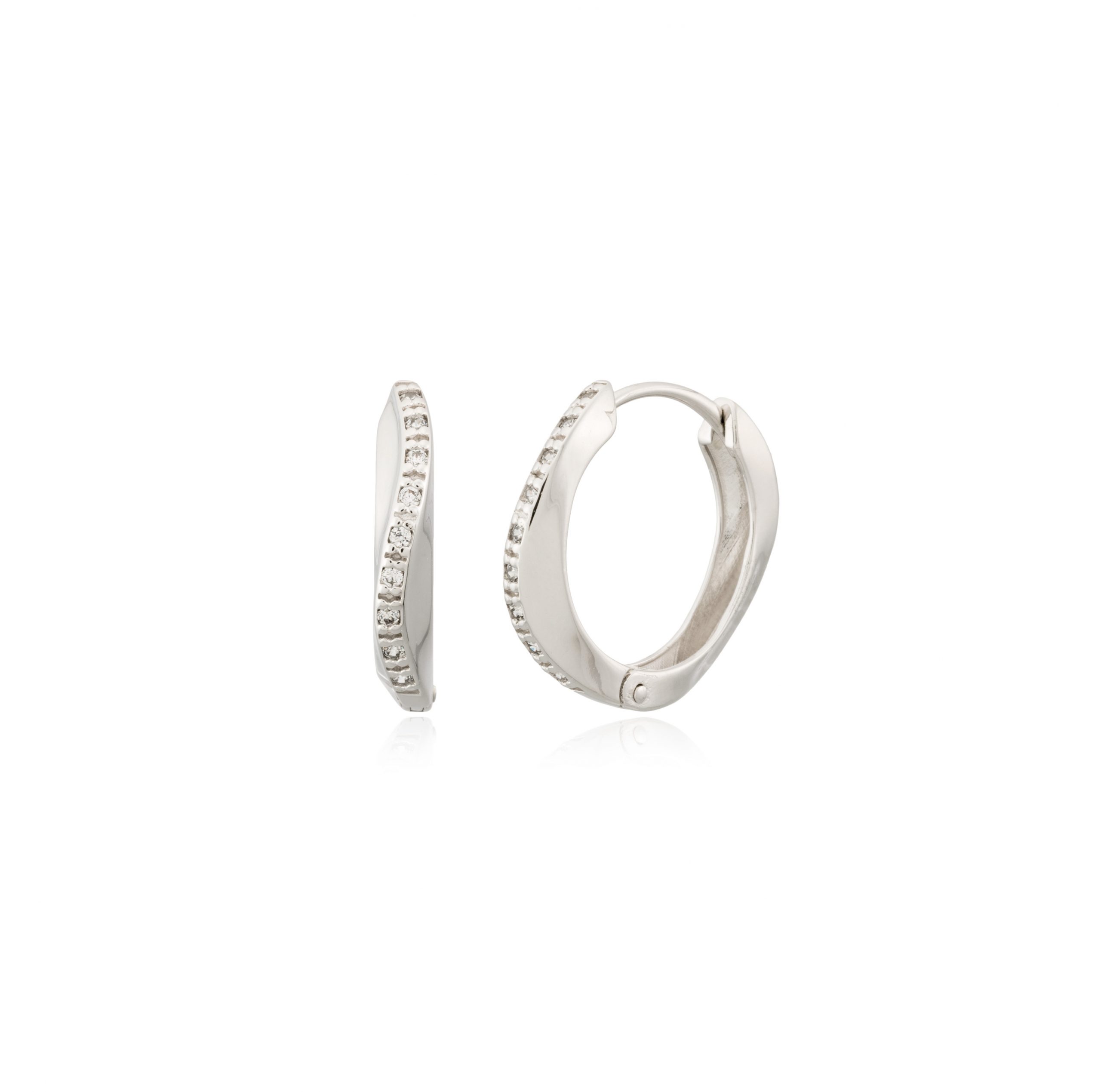 Pendientes de aro Huggie pequeño en oro blanco de 9 quilates de 15,66 mm con incrustaciones de 9 circonitas de 1,00 mm. Se venden por par o por unidad.