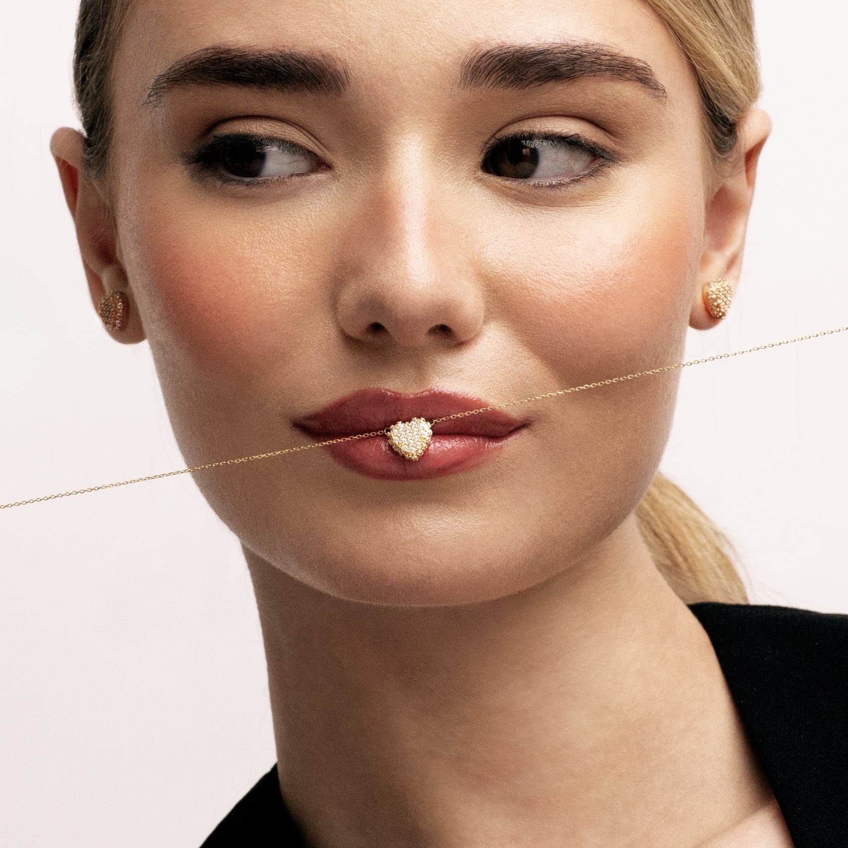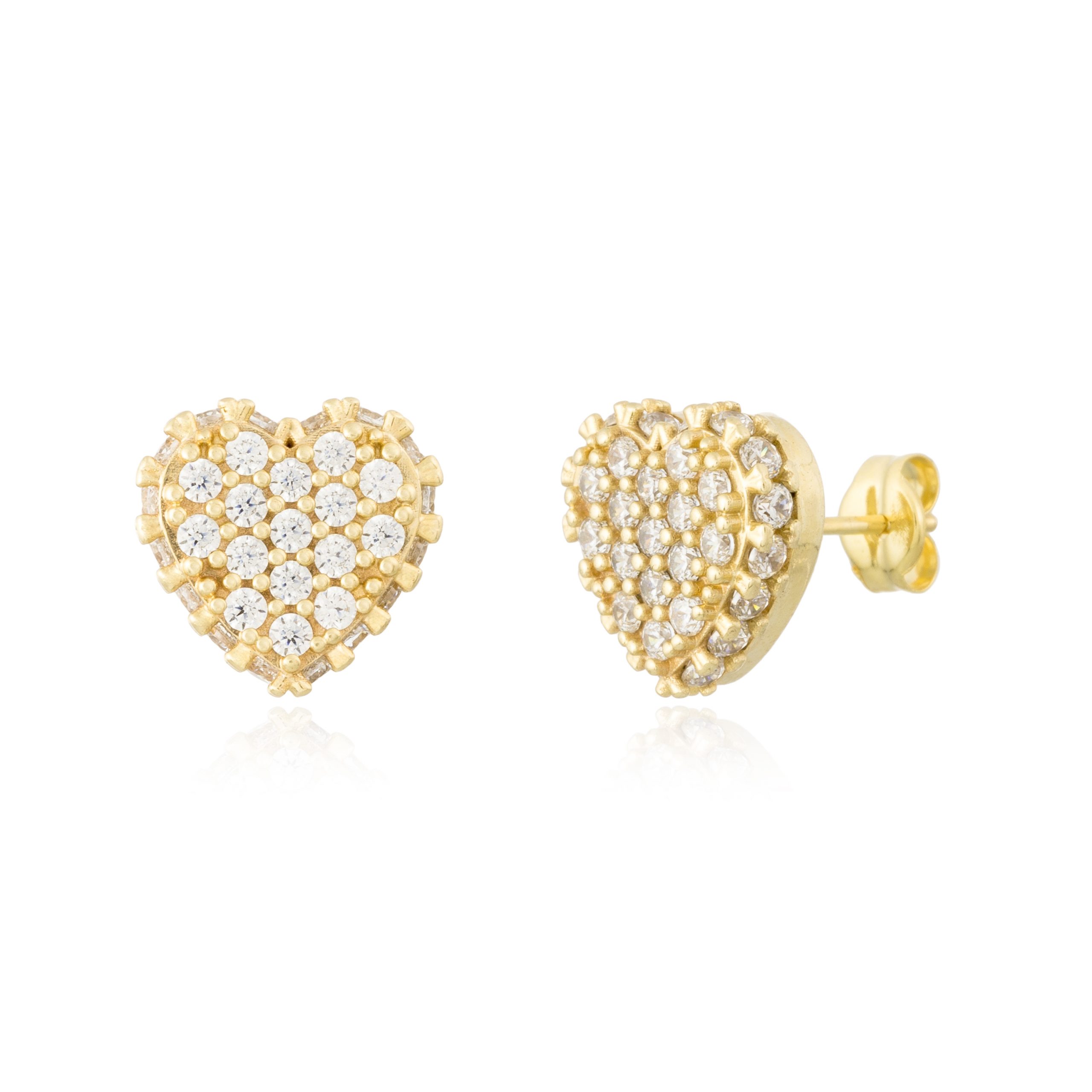 Pendientes Big Heart Flash en oro amarillo de 9 quilates con dimensiones 9,00 x 9,40 mm incluidas presiones, 32 circonitas de 1,50 mm. Perfecto para todo tipo de ocasiones.