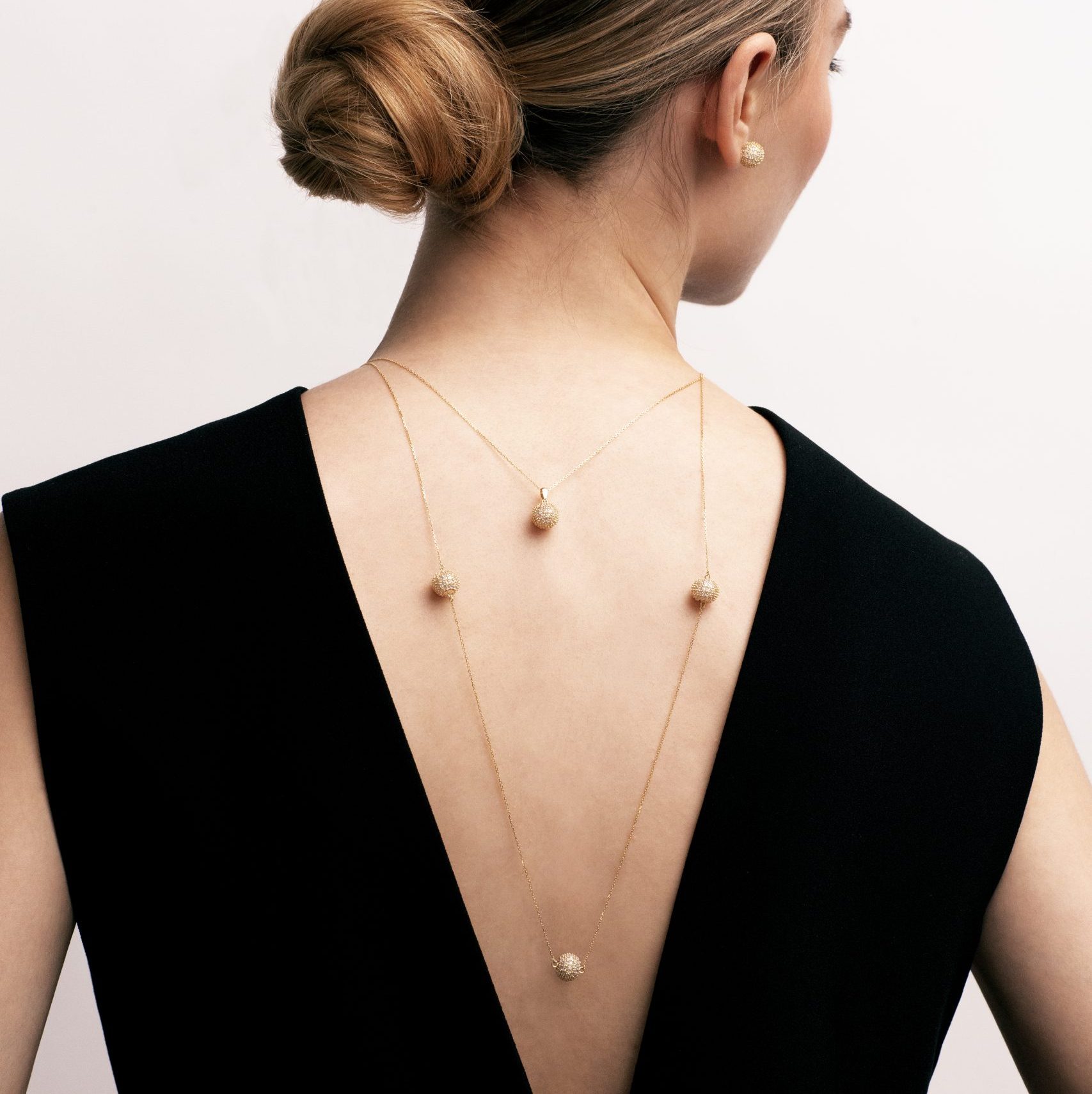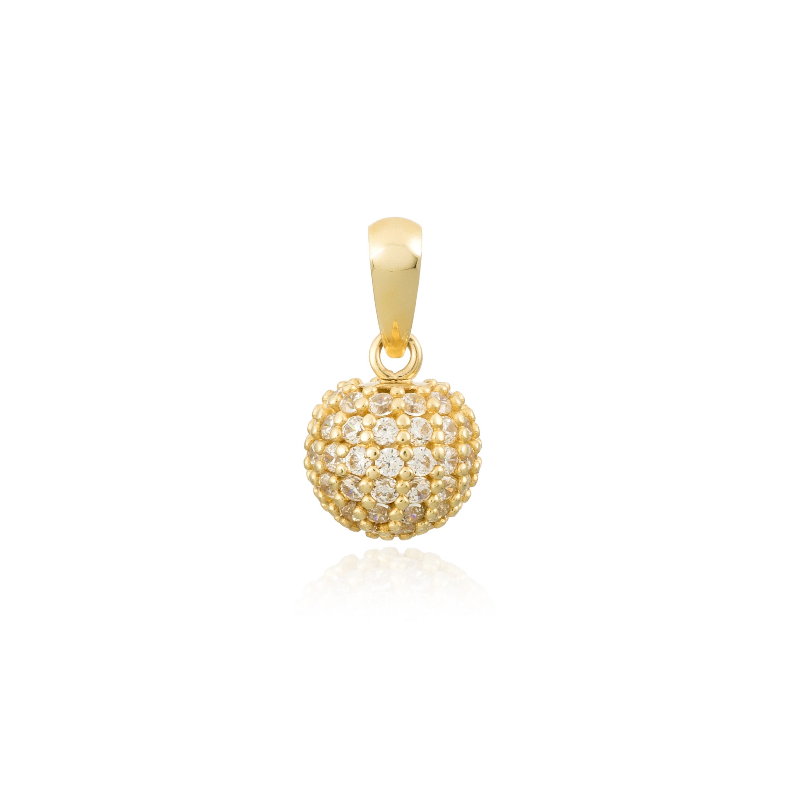 Colgante Ball-S en oro amarillo de 9 quilates de esfera con dimensiones de 6 mm e incrustaciones de 78 circonitas de 1,20 mm. Cadena no incluida.