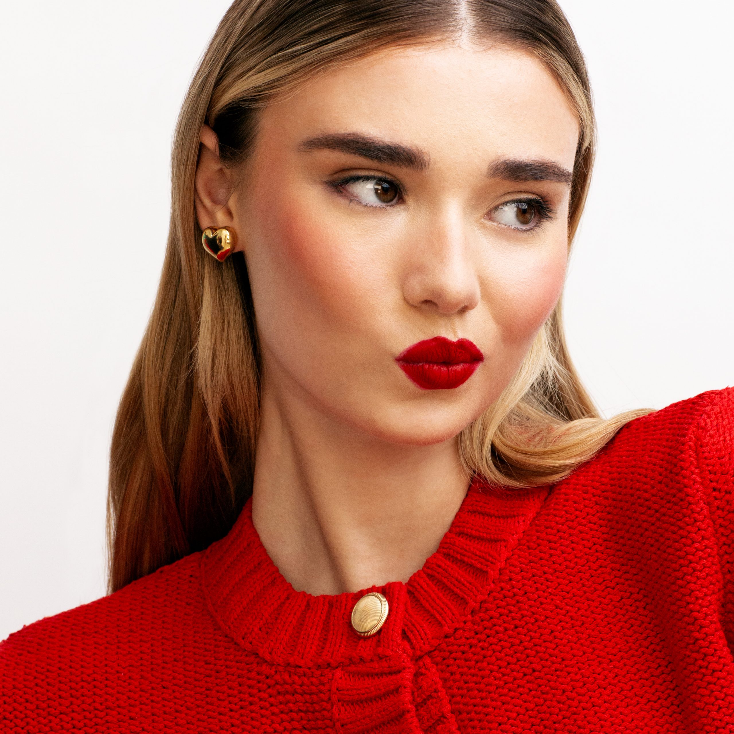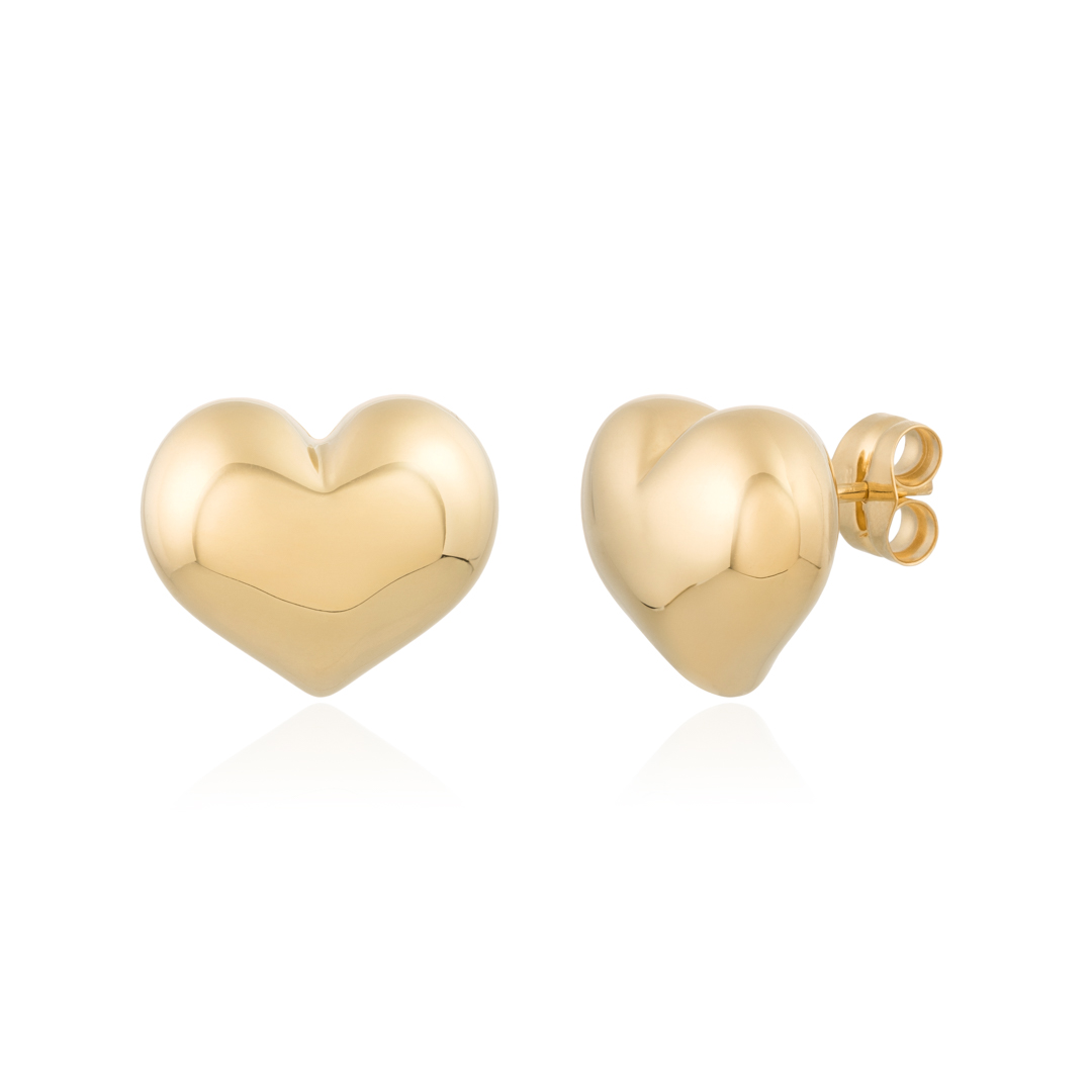 Pendientes Fuffly Heart- M en oro amarillo de 18 quilates con forma de corazón mullido de dimensiones 16 x 13,80 mm incluidas presiones.