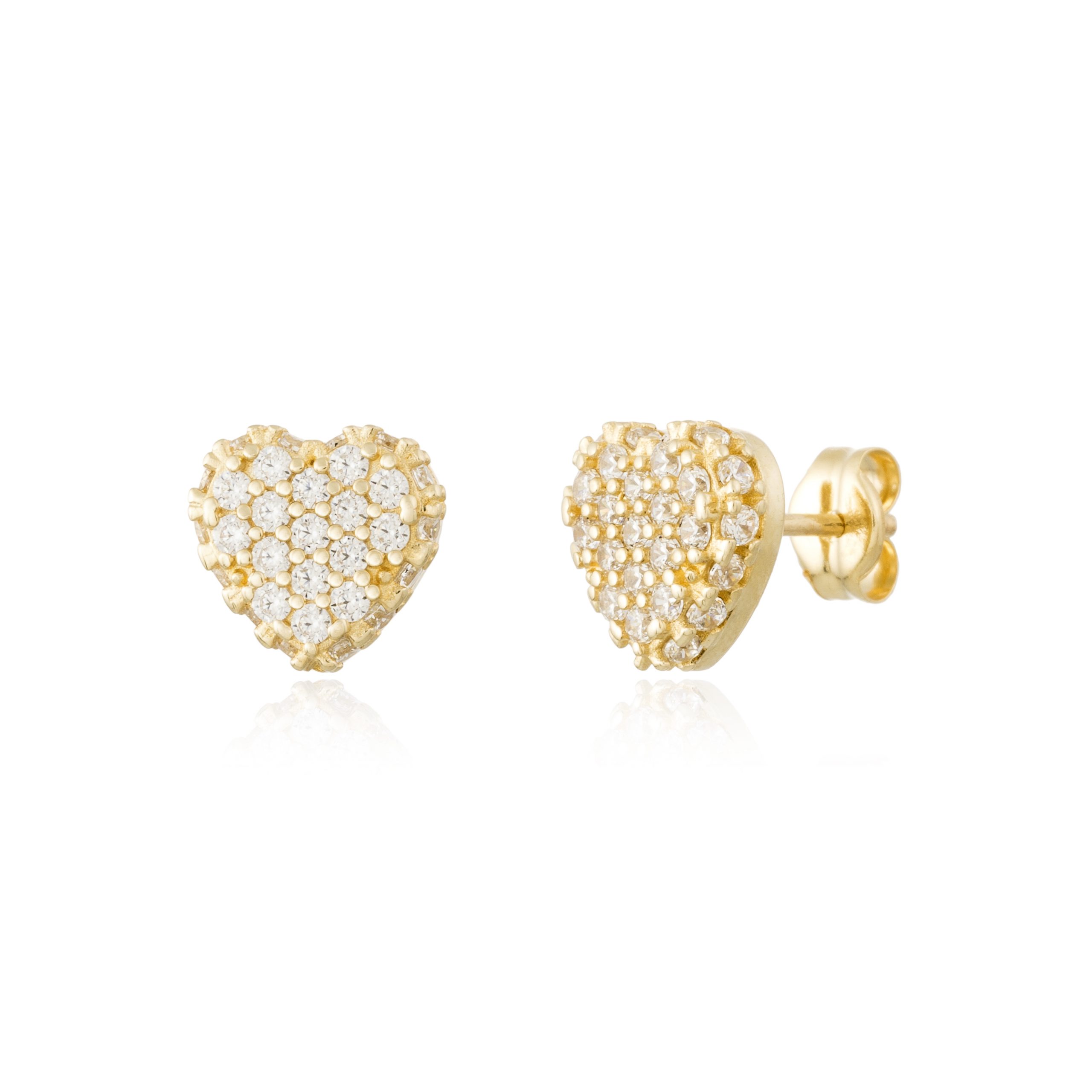 Pendientes Medium Heart Flash en oro amarillo de 9 quilates con dimensiones 7,40 x 7,70 mm incluidas presiones, 30 circonitas de 1,30 mm. Perfectos para todo tipo de ocasiones.