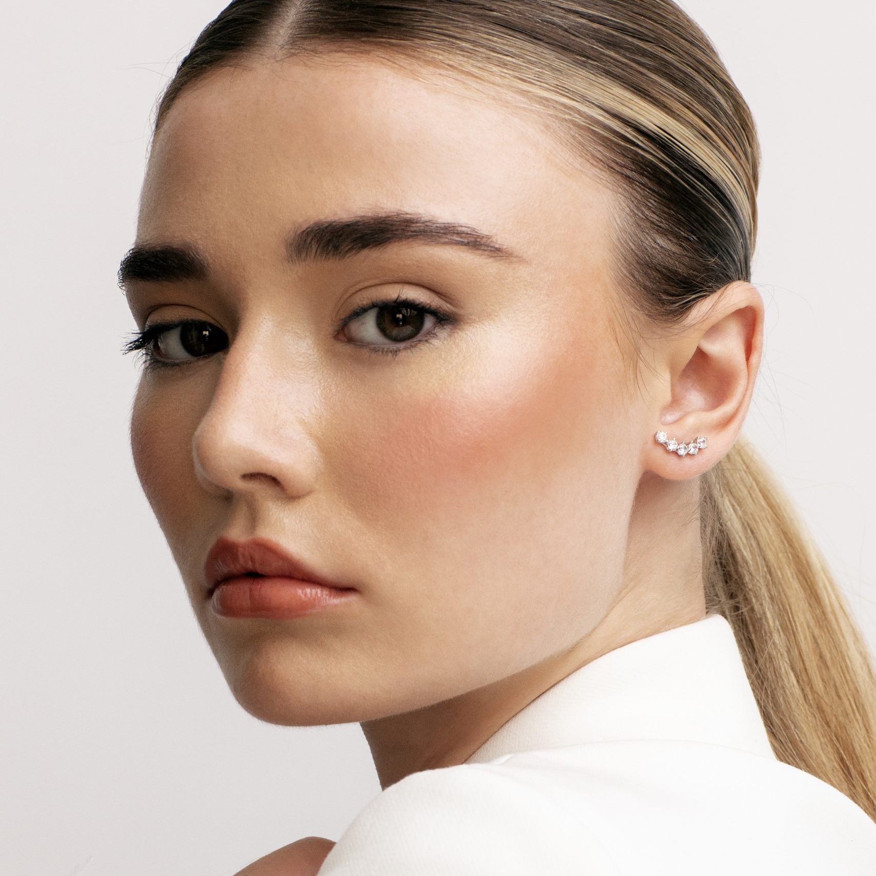 Pendientes Multigarra 4-B en oro blanco de 9 quilates con incrustaciones de 5 circonitas DE 3 mm cada una. Se venden en par o individual.