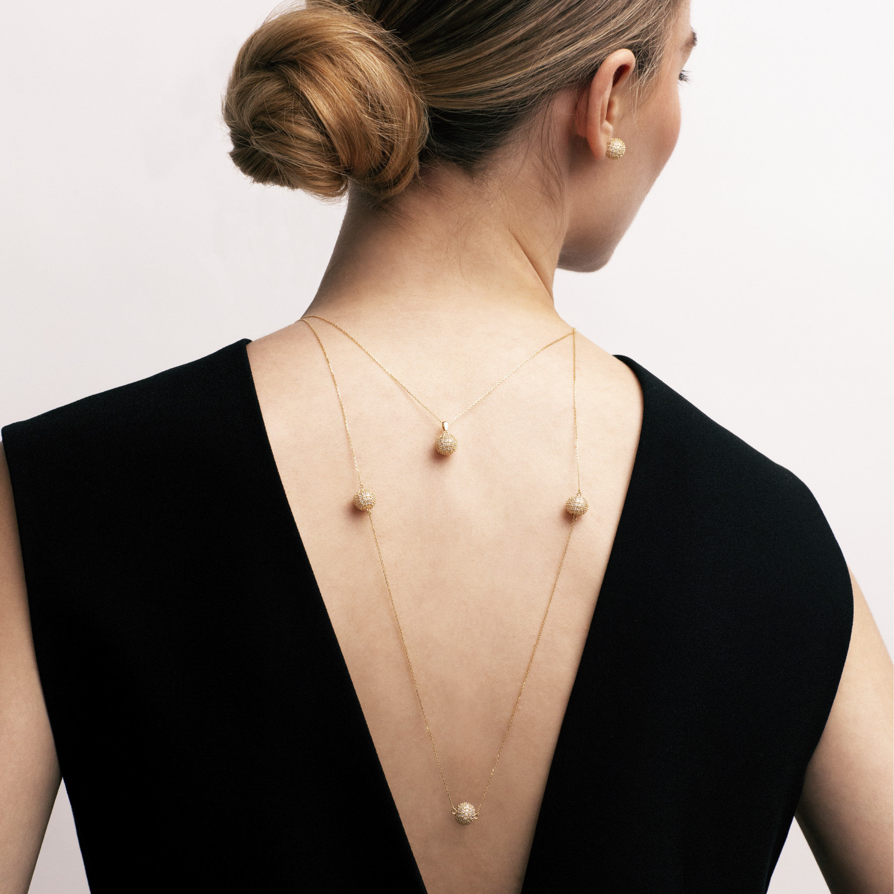 Pendientes Ball-G en oro amarillo de 9 quilates de esfera con dimensiones de 10 mm e incrustaciones de 156 circonitas de 1,50 mm. Presiones incluidas.
