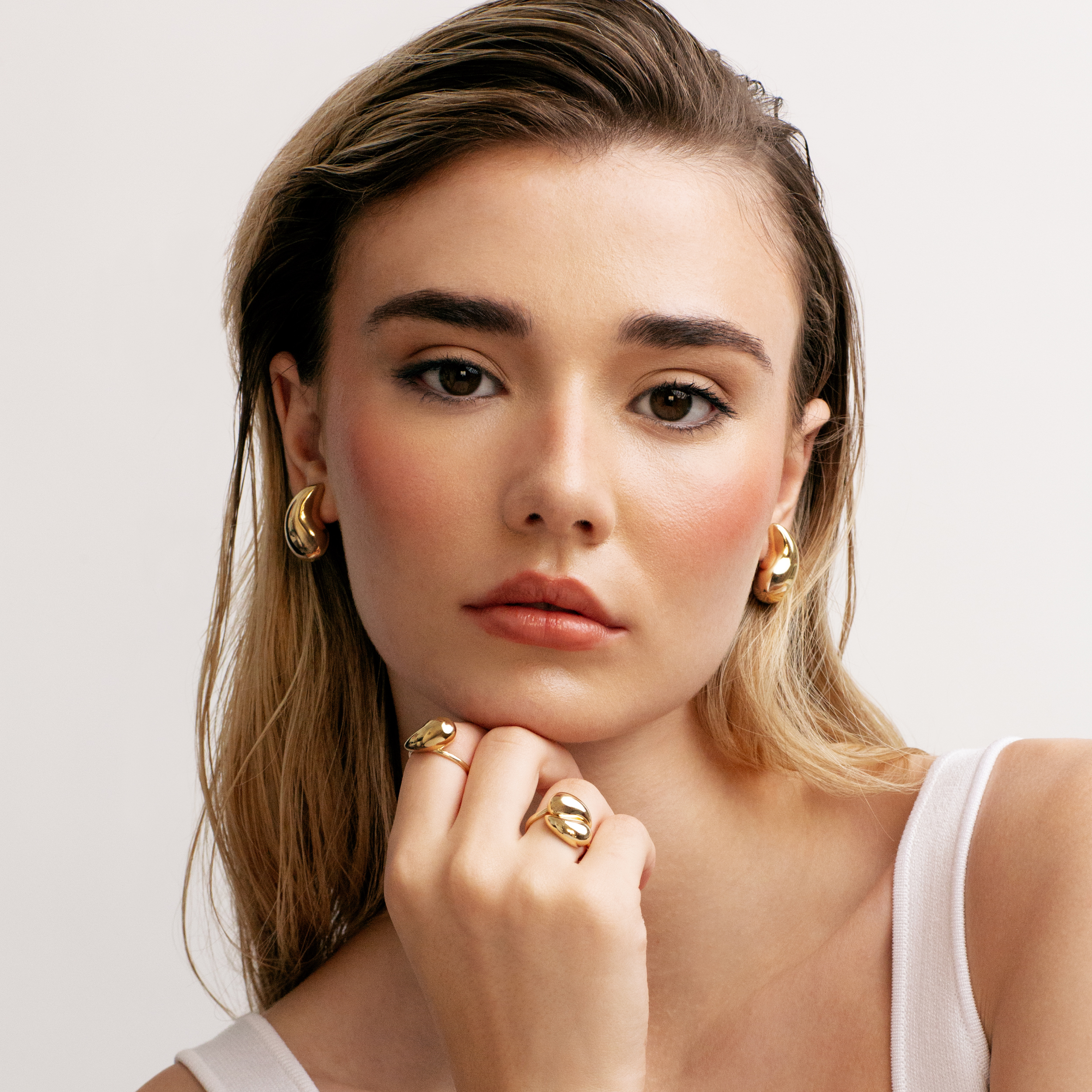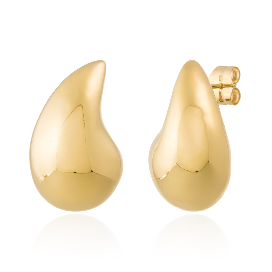 Pendientes Big Tear en oro 9 quilates con dimensiones 24,40 x 15 mm incluidas presiones. Complemento perfecto a juego con anillos y colgante.