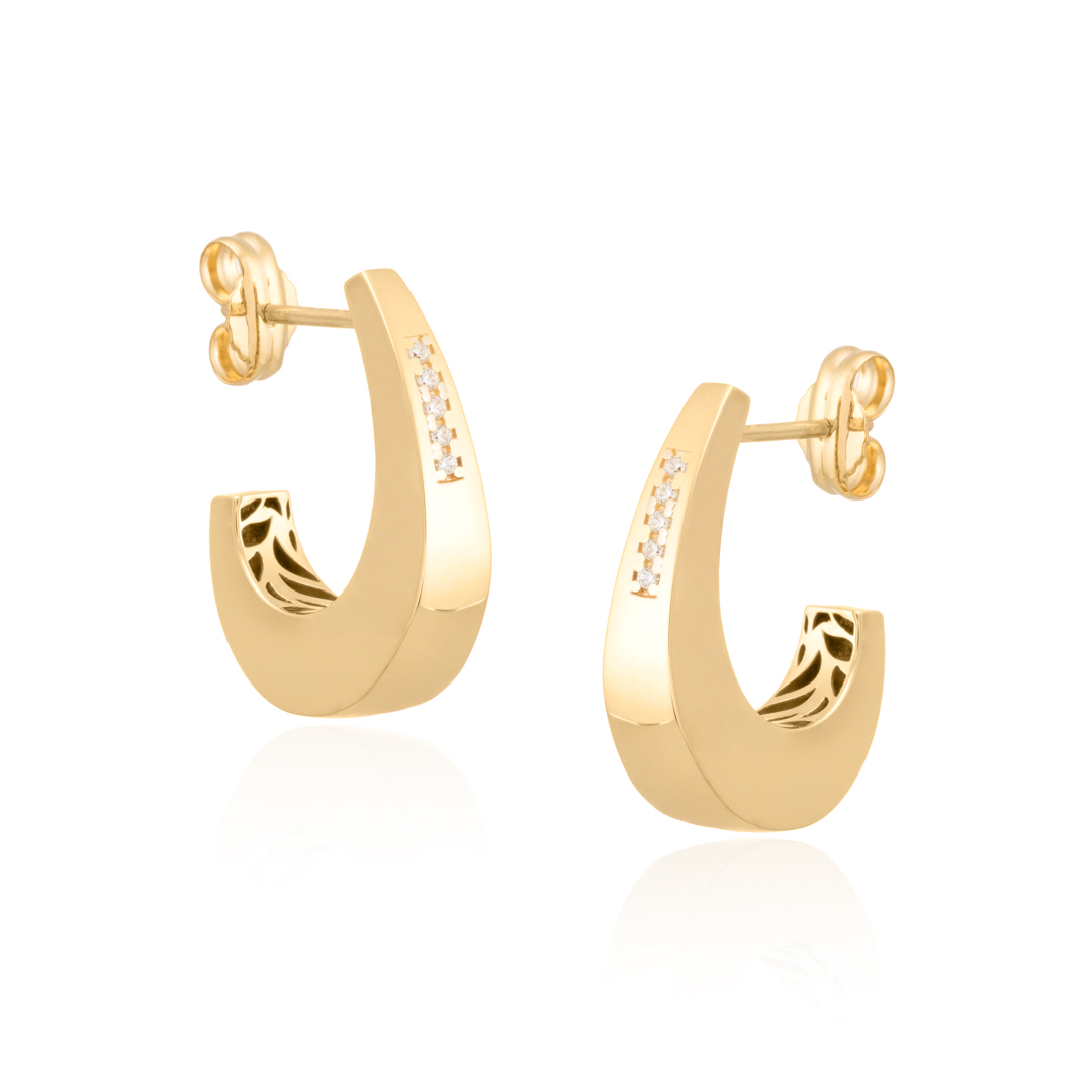 Pendientes Cross Criolla en oro amarillo de 9 quilates con dimensiones 19 x 4,75 mm e incrustaciones de circonitas, incluidas presiones.