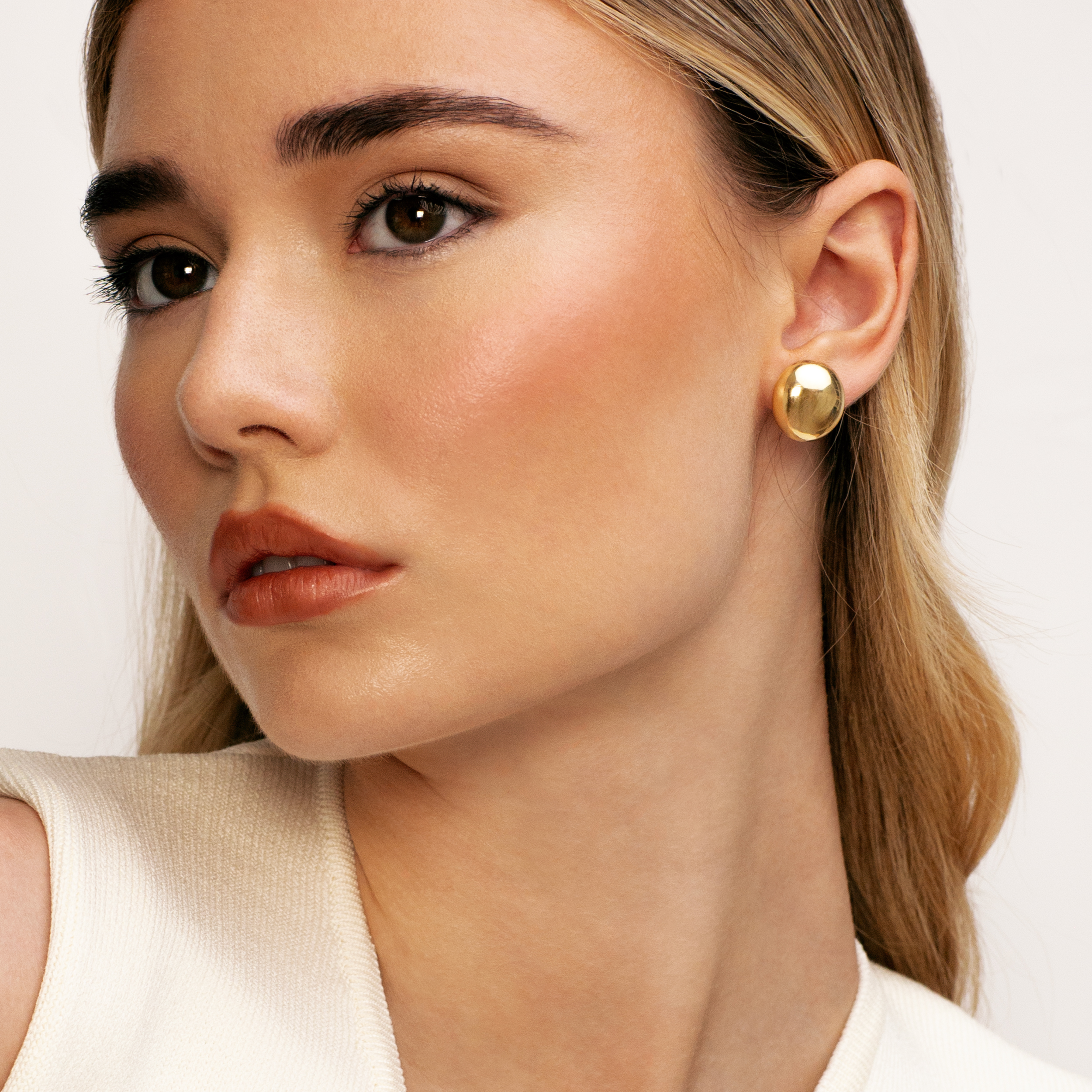 Pendientes Medium Button en oro amarillo de 18 quilates con dimensiones 17 mm incluidas presiones. Perfectos para todo tipo de ocasiones.