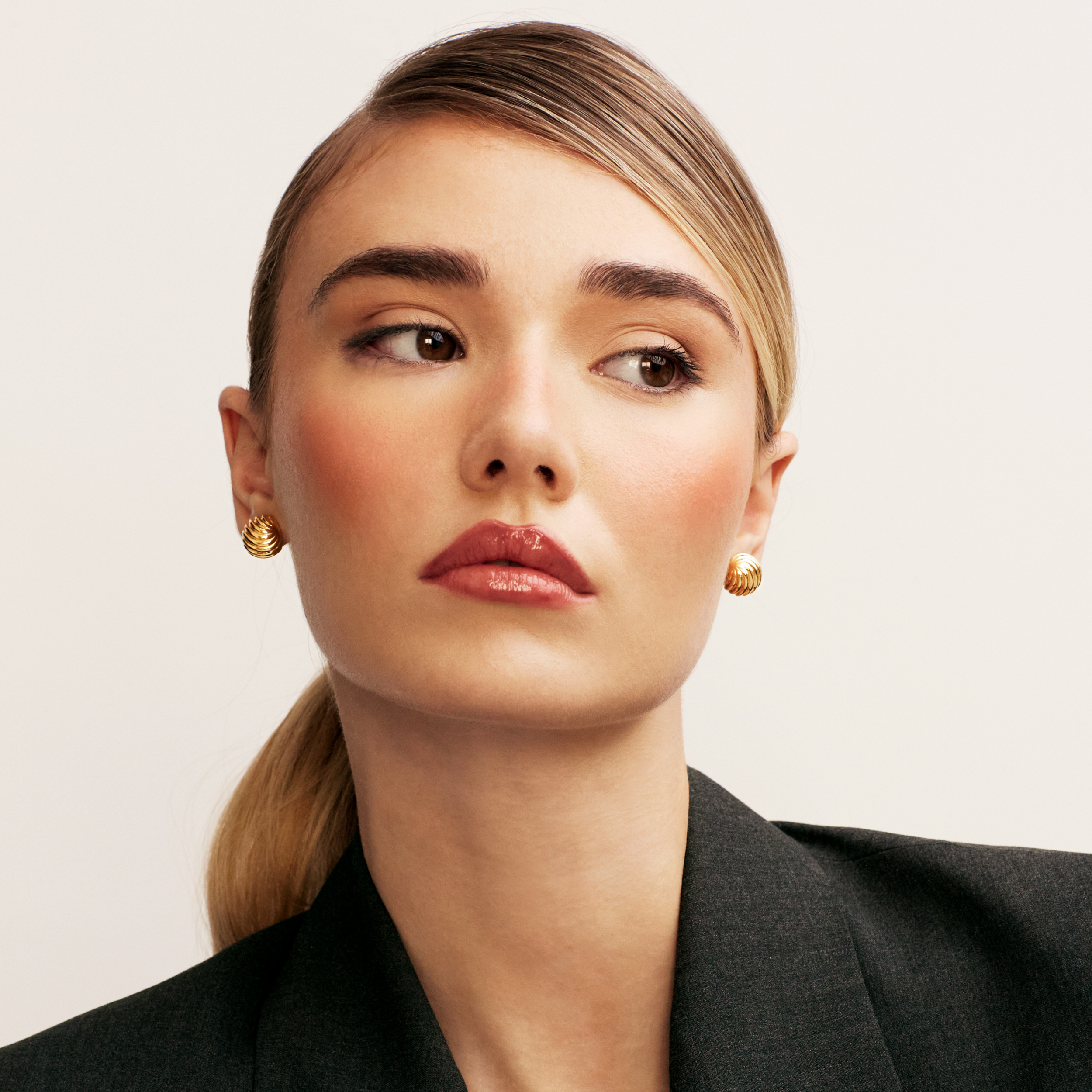 Pendientes Stripes Ball en oro amarillo de 18 quilates con dimensiones 12,70 mm incluidas presiones. Perfectos para todo tipo de ocasiones.