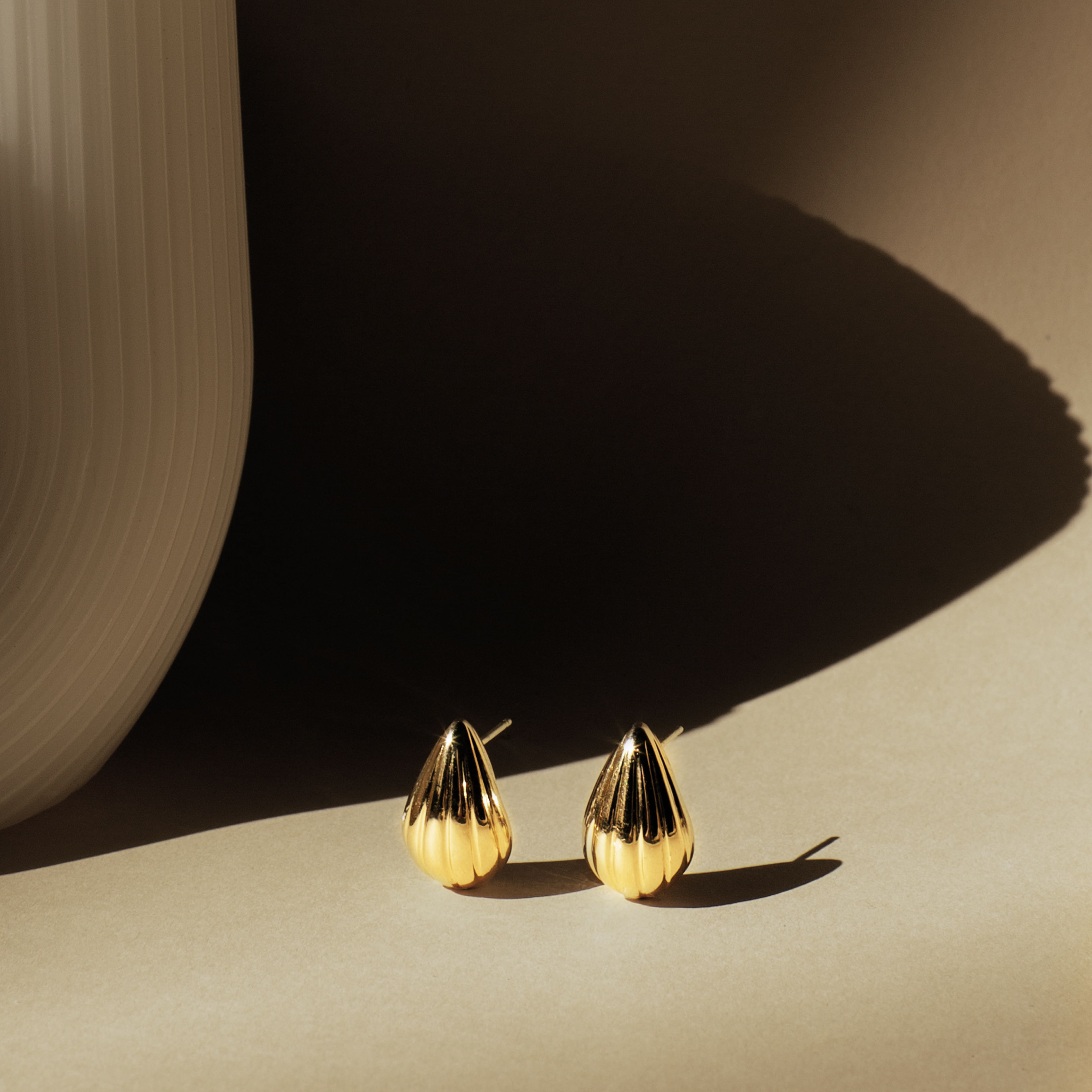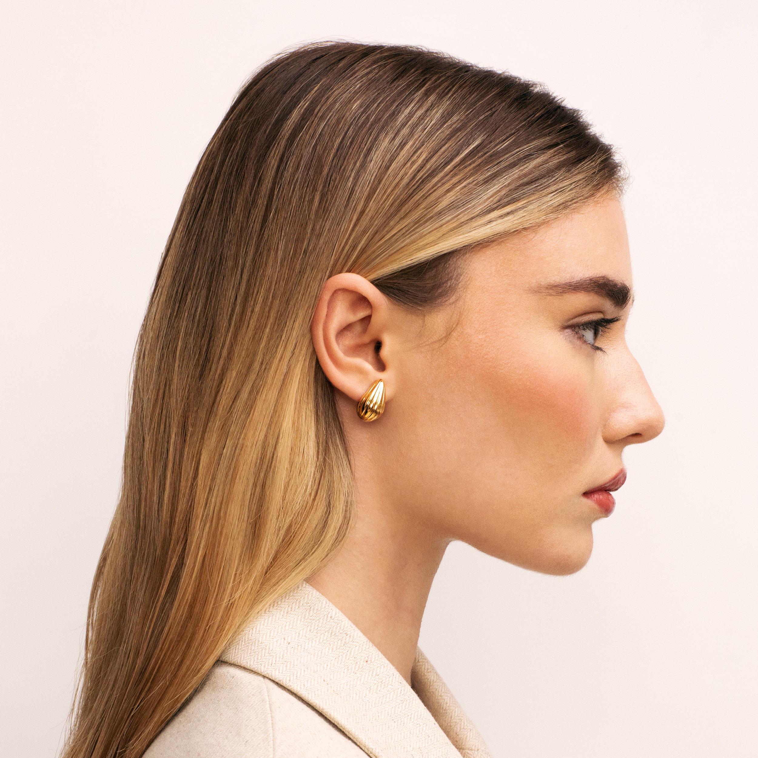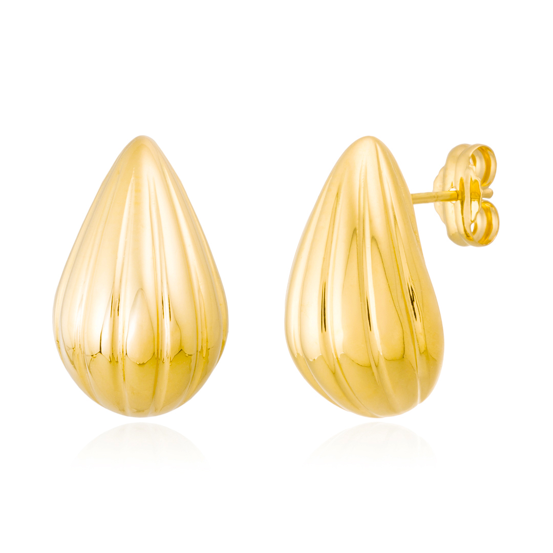 Pendientes Stripes Tear en oro amarillo de 18 quilates con dimensiones 18,50 x 11,50 mm incluidas presiones. Perfectos para todo tipo de ocasiones.