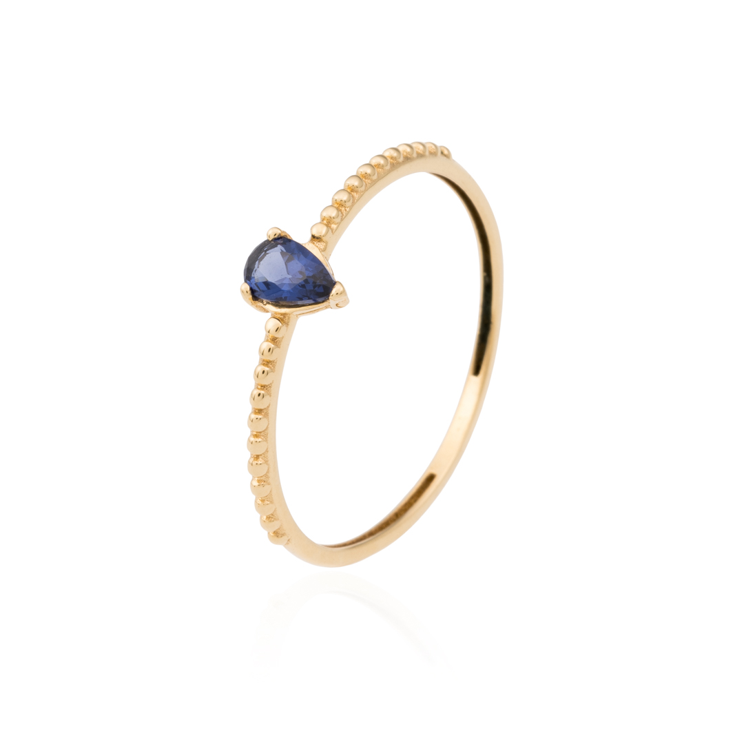 Sortija N-zafiro en oro de 18 quilates con dimensiones de 20,00 mm, con una pieza nano zafiro de lágrima 5 x 3 mm. Disponible en todas las tallas.