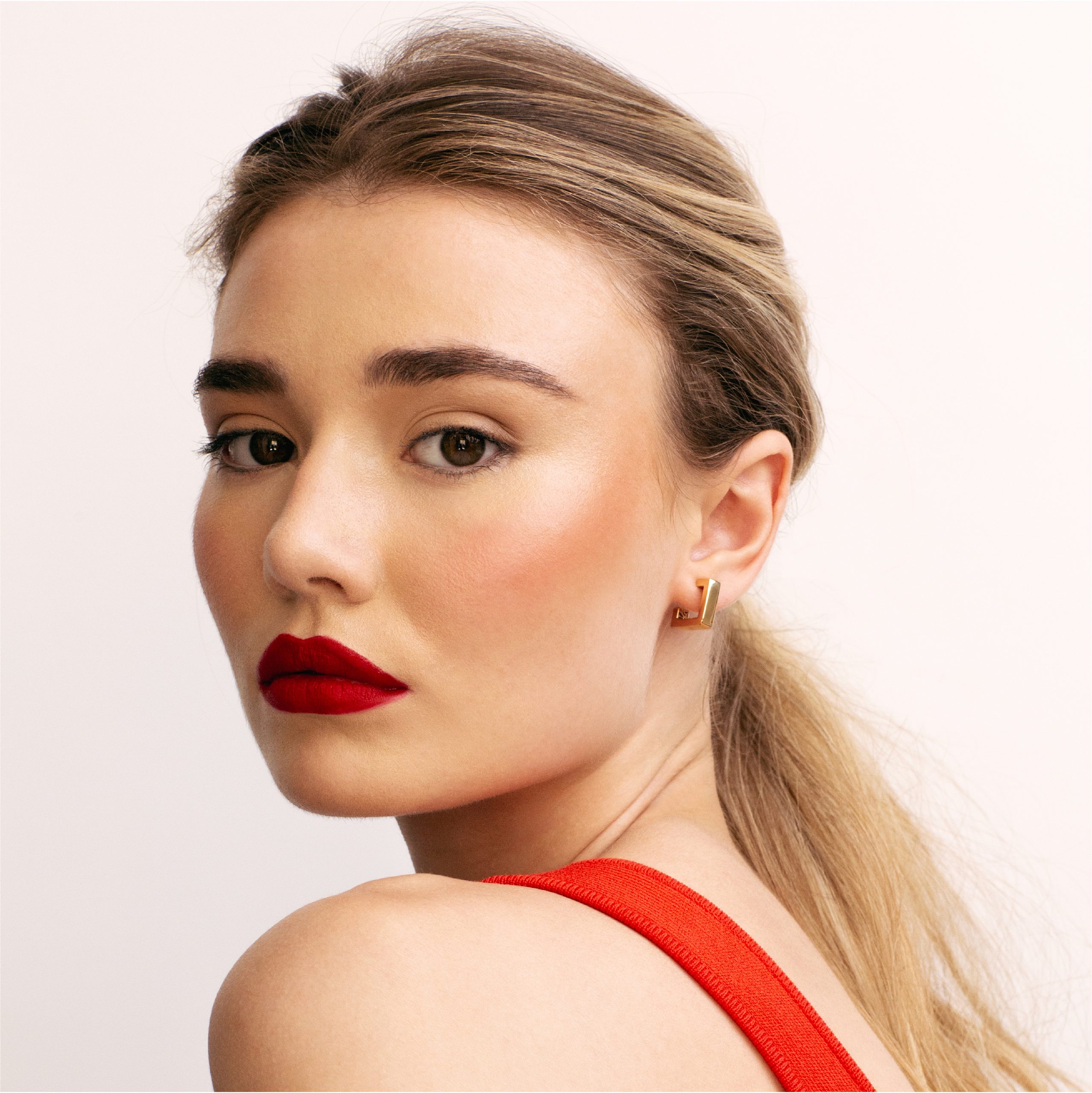 Pendientes Squares en oro amarillo de 9 quilates con con forma de cuadrado dimensiones 14,40 x 4,50 mm incluidas presiones.